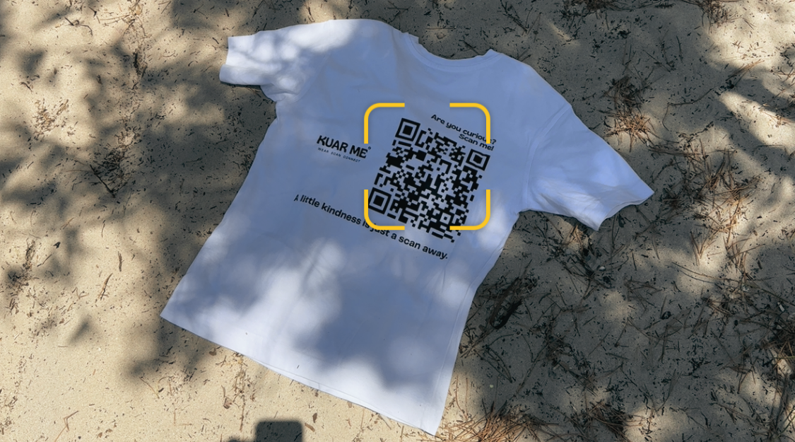 That’s why every KUAR ME T-shirt carries a hidden message in a scannable QR code.